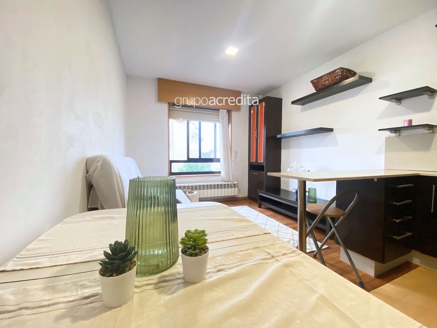- Segunda habitación exterior con individual, escritorio con silla y armario empotrado forrado y dividido.