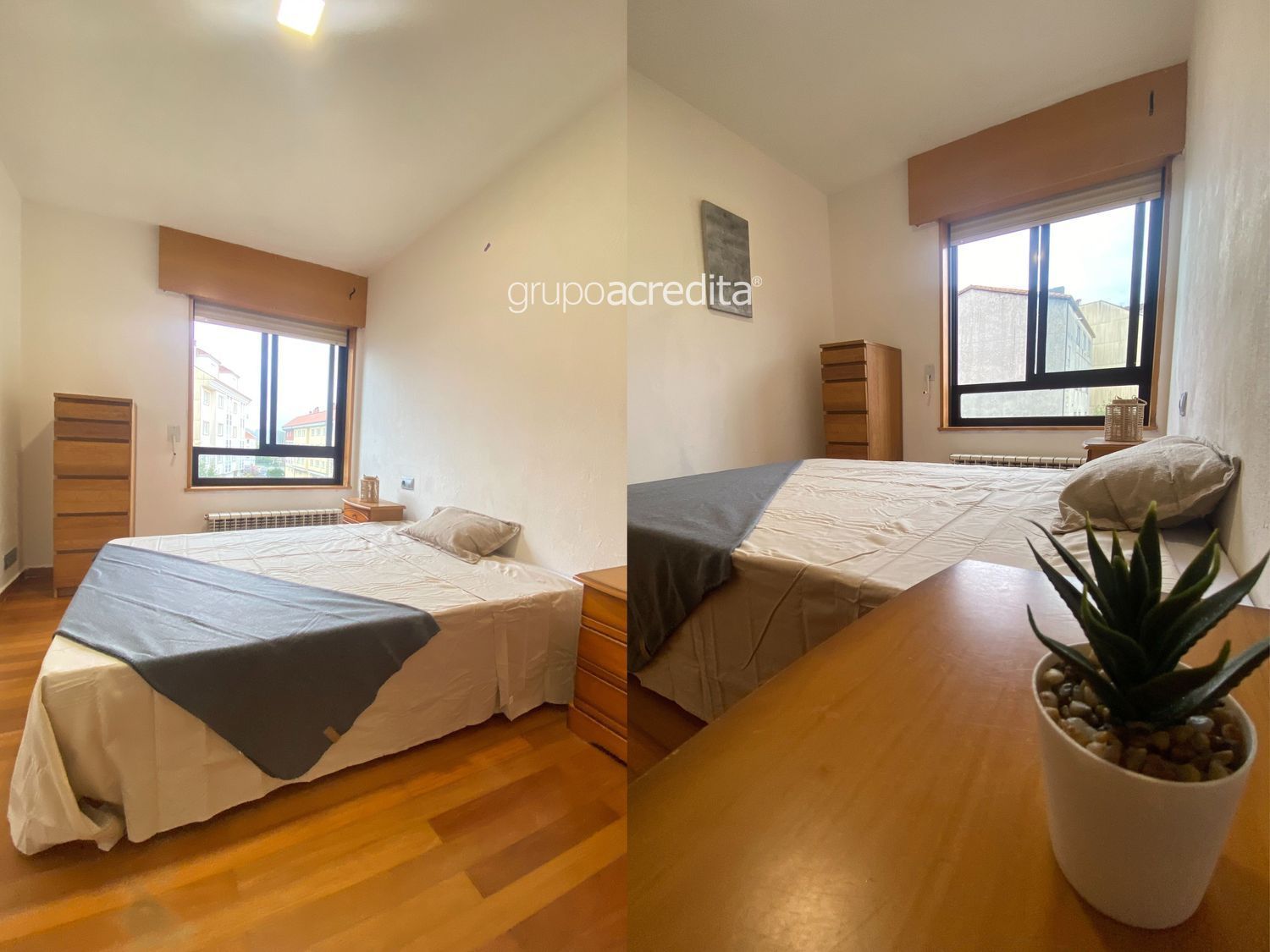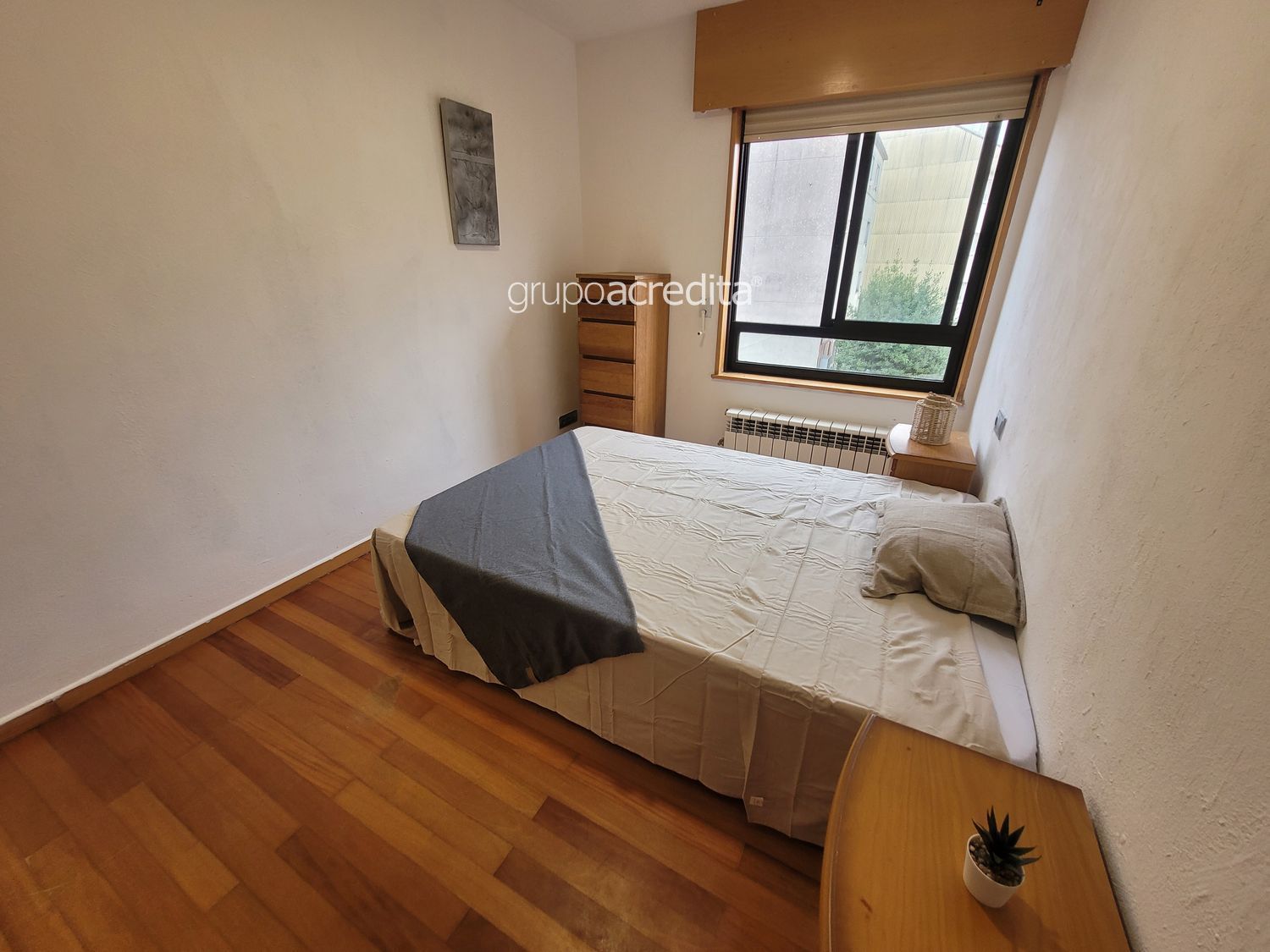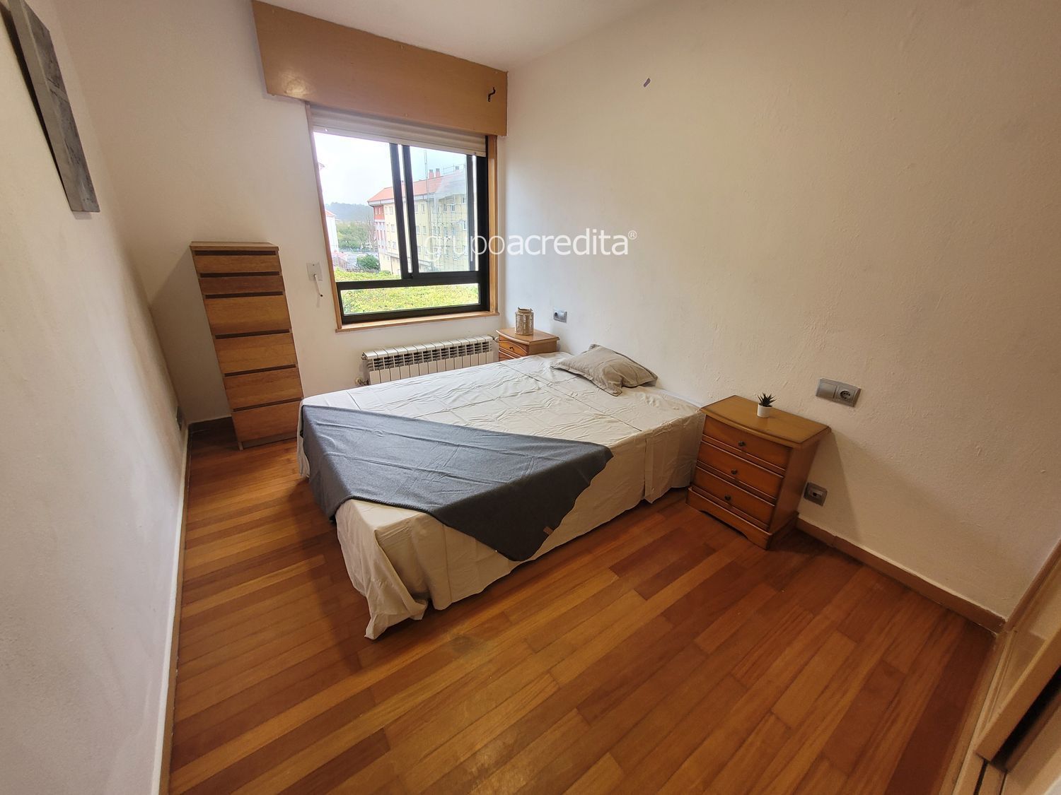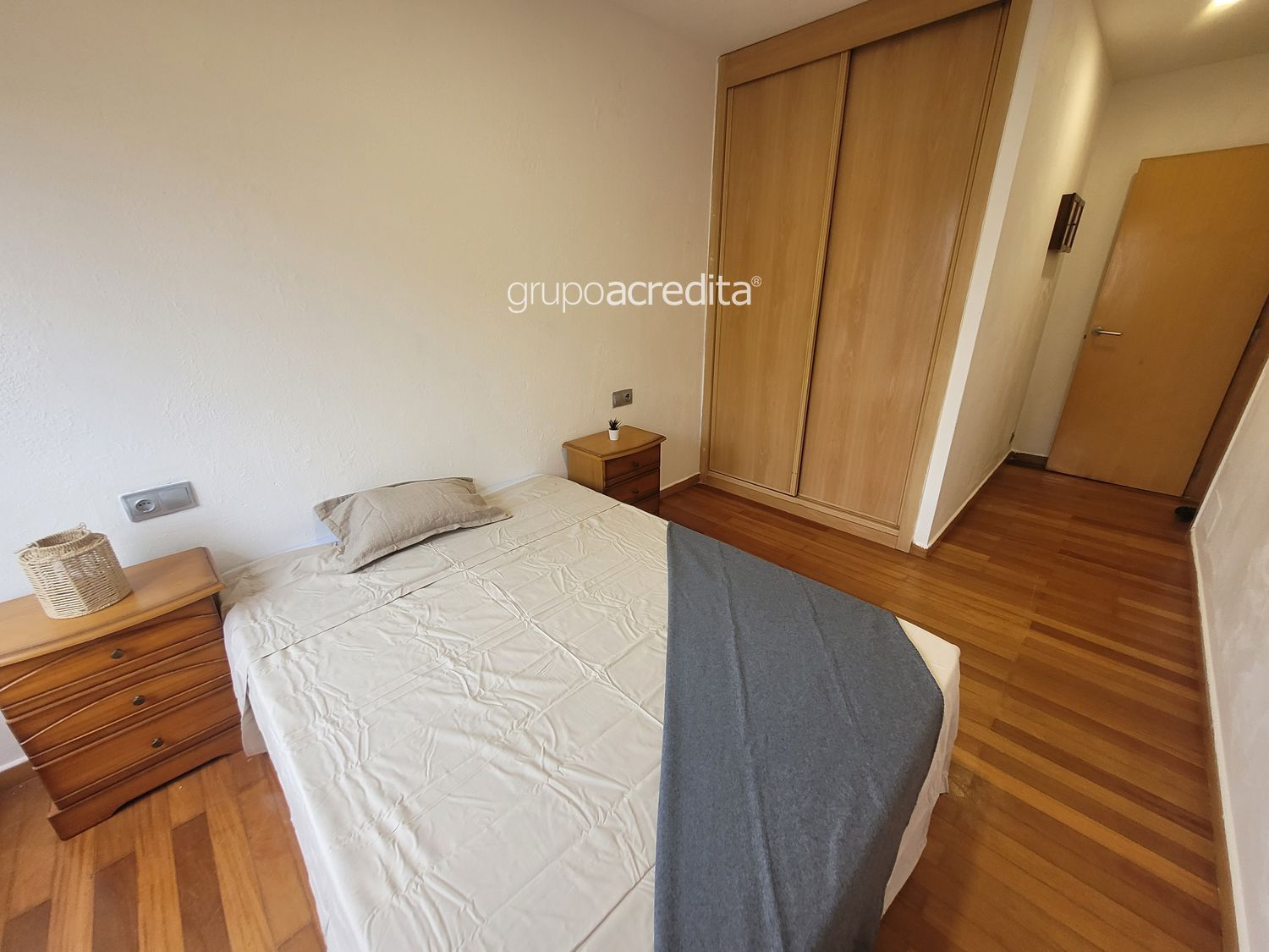 - Habitación principal exterior cuenta con cama de matrimonio, dos mesillas, sifonier y un armario empotrado forrado y dividido